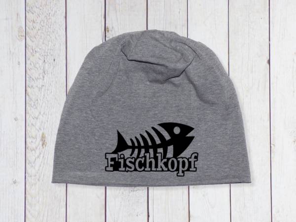 Weiche Jersey Fischkopf Mütze / Beanie maritim mit Fischgräte | Unisex | Farbe wählbar | Norddeutsche Geschenke
